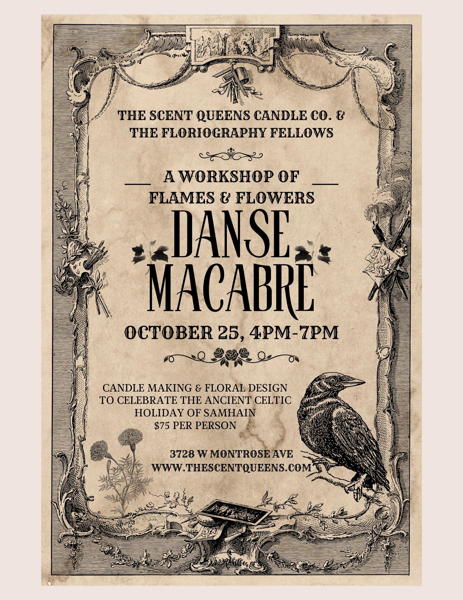 This gathering invites you to honor the ancient Celtic lore and mysteries through the twin crafts of candle making and floral design, creating ritual works of beauty that echo both life and death, bloom and decay.